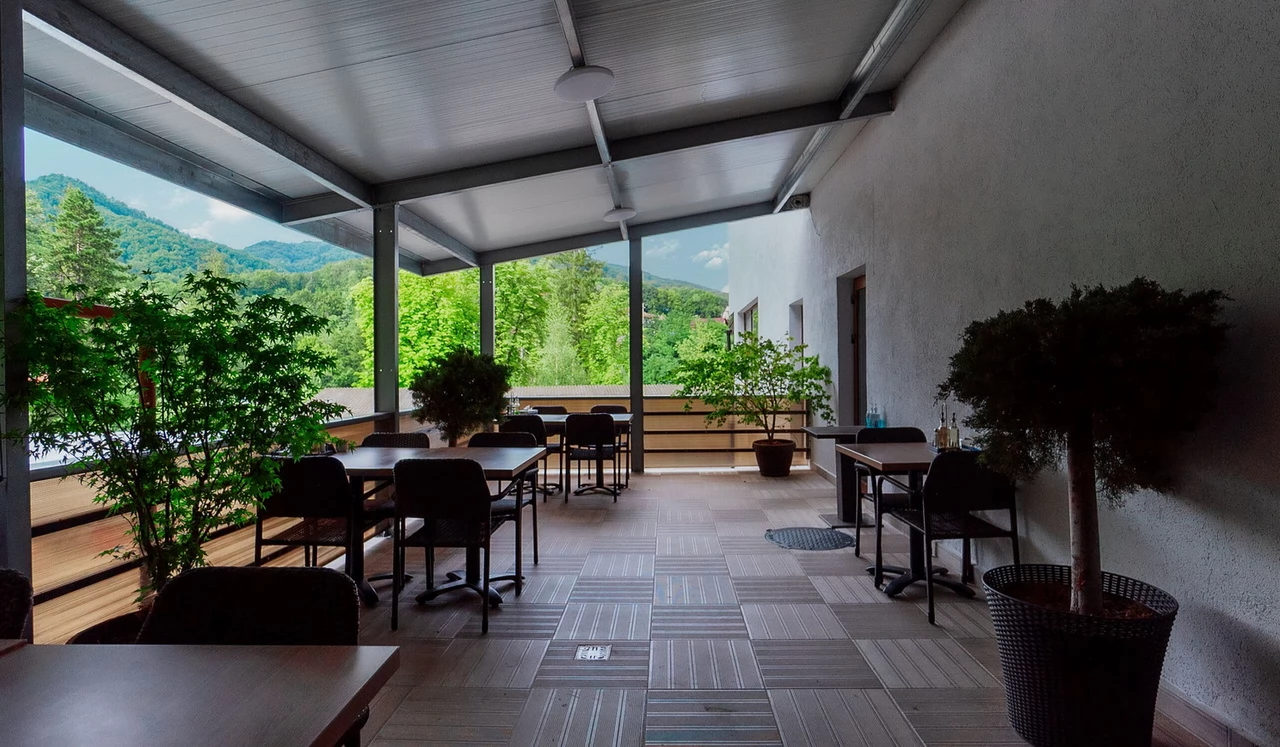 - Restaurantul este completat cu o terasa acoperita, cu 9 locuri.
