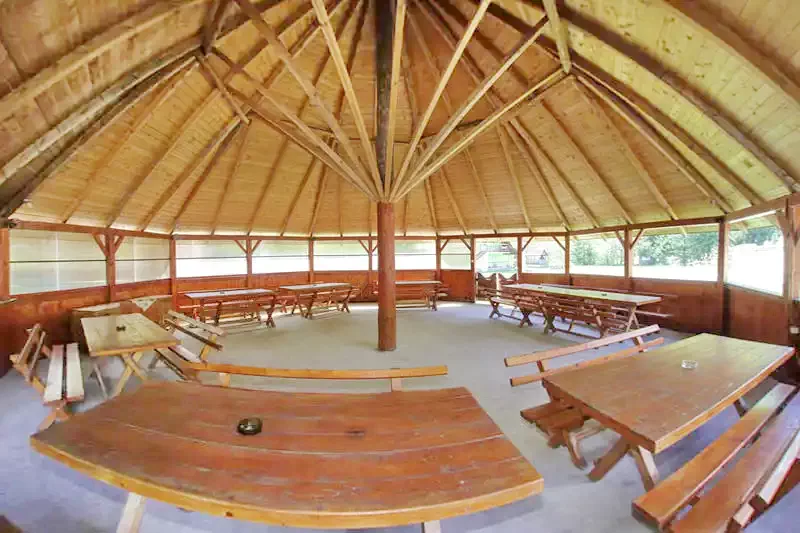 Cabana Jeni **, este o cladire cu camere spatioase, si cu etaj. Are curtea cu pajiste si cu brazi in centrul caruia este asezat mobilierul de gradina, cu toate accesoriile pentru programe de gatit la aer liber (gratar, ceaun, etc.).