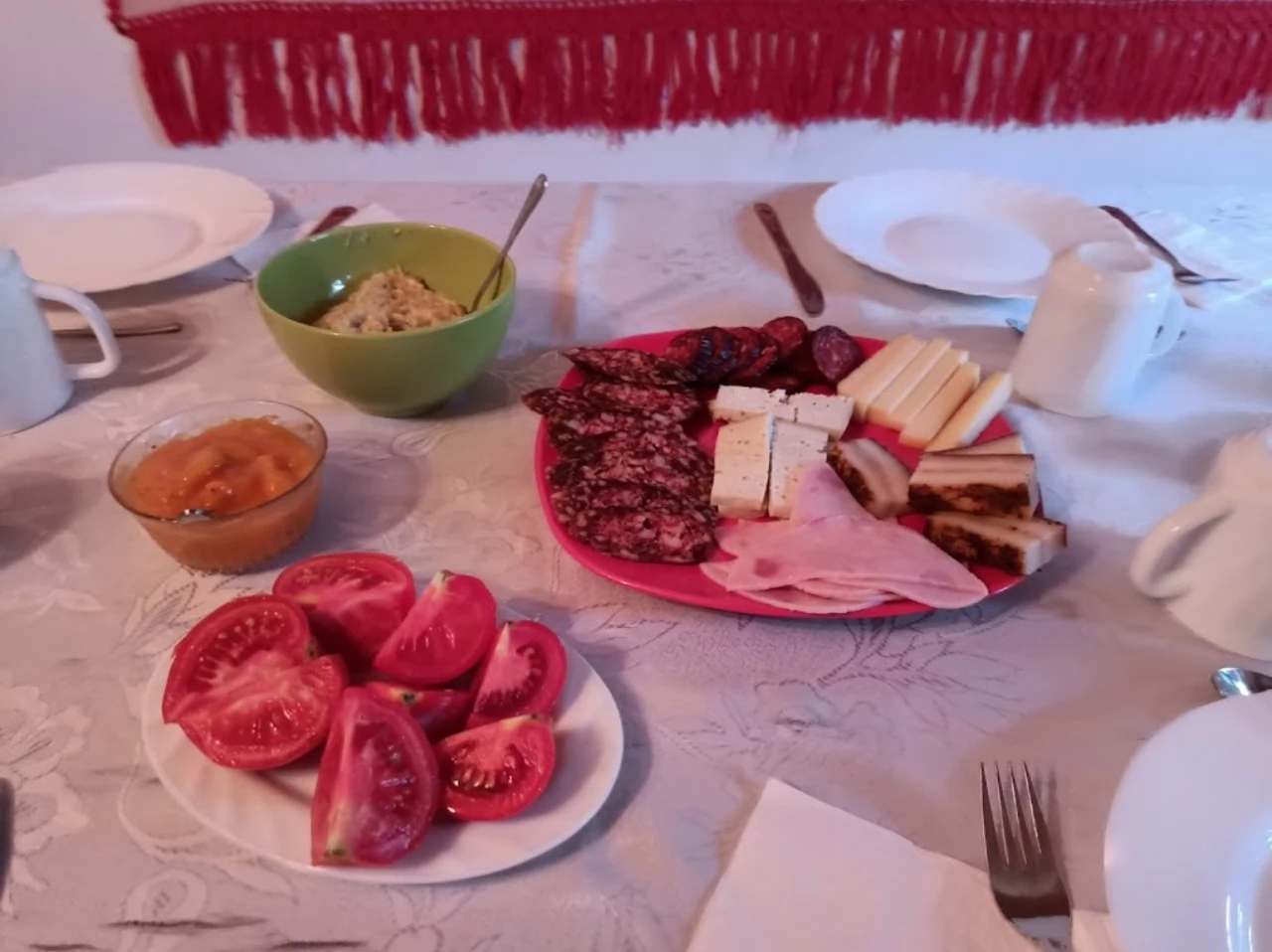Toate mesele asigurate sunt din alimentele produse de proprietari prin agricultura traditionala practicata pe terenurile agricole proprii (cereale, lactate, mezeluri, etc.)