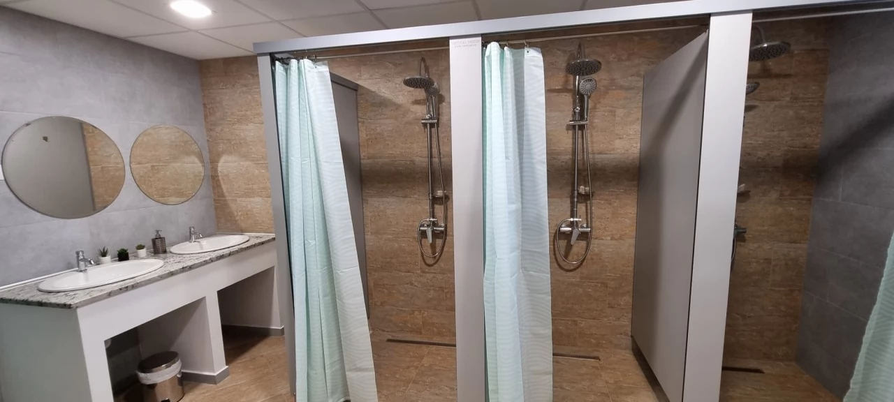Bai comune separate pe sexe cu toalete si dușuri calde.