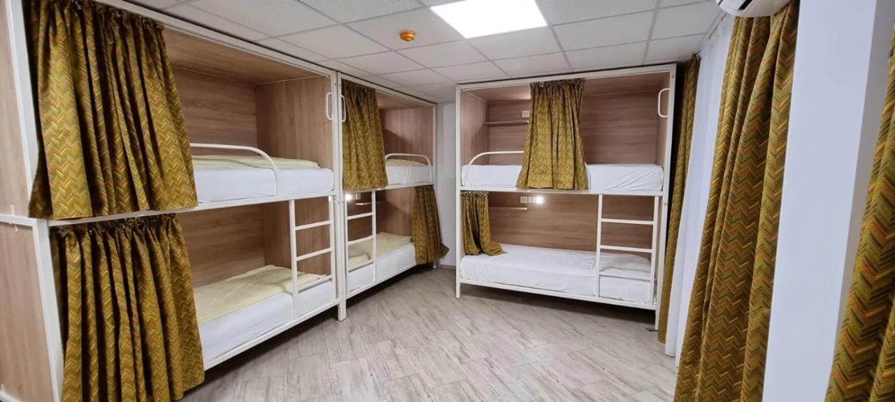 Dormitor exclusiv pentru femei cu paturi supraetajate foarte confortabile pentru 8 persoane de 100/200 cm. Fiecare pat are lumina proprie de lectura, priza, perdea pentru intimitate, lenjerie gratuita si dulap cu încuietoare spațios, aer condiționat, suprafața 28 mp.