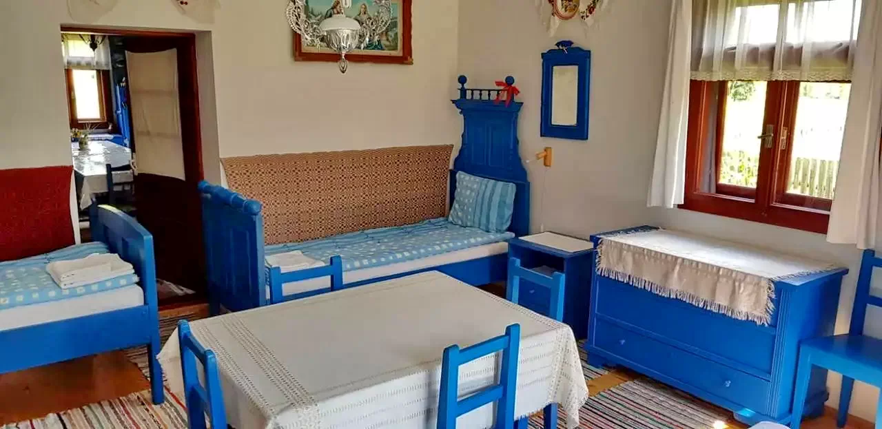 Cele 2 camere cu specific ceangaiesc si sufrageria dotata cu mobilier din Ghimes ofera o atmosfera rustica placuta. Oaspetii nostri pot alege dupa plac din specialitatile din Ghimes, mancaruri vegetariene si bio.