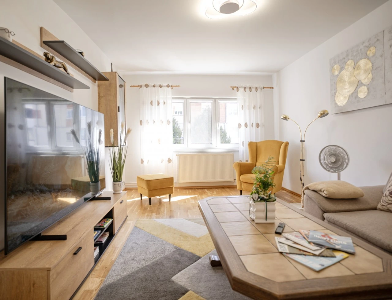 Apartamentul are 70 m2, ideal pentru 1-2 familii.