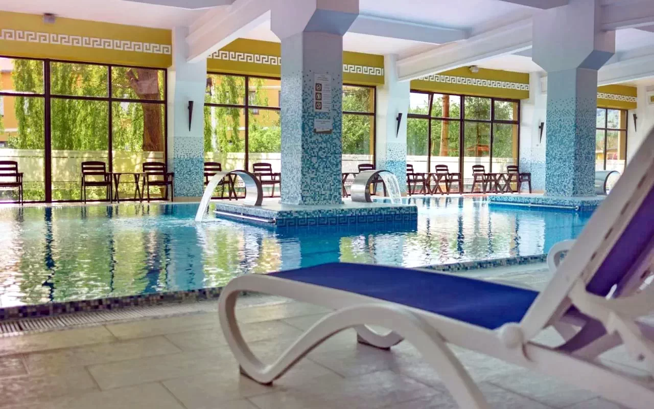 • Relaxare in zona noastra wellness: piscina incalzita pentru adulti si copii, jacuzzi cu apa dulce, bazine cu apa sarata, sauna finlandeza si cu infrarosu, baie de aburi, camera cu sare