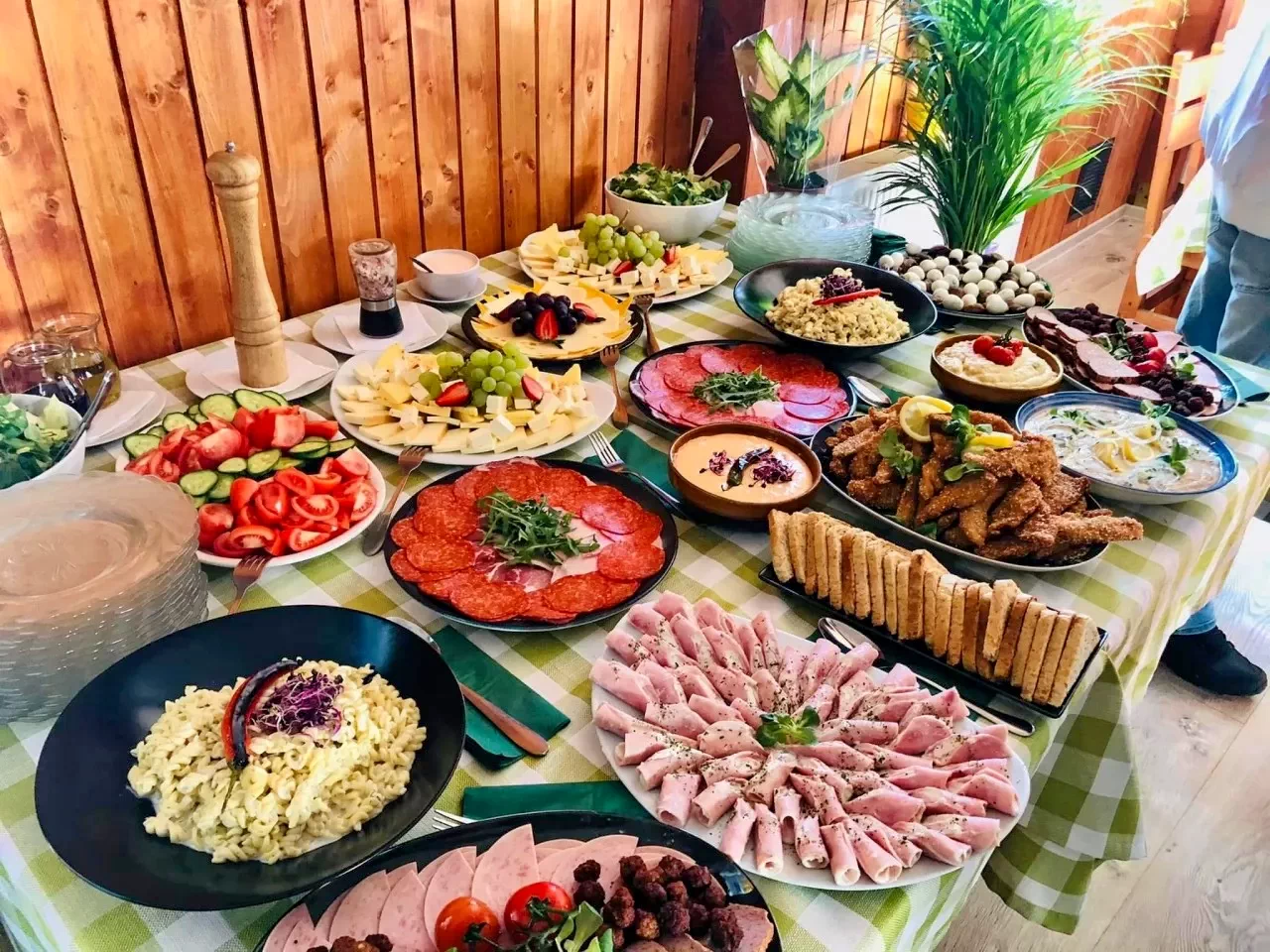 Prânzul si Cina de mai multe feluri (purcel întreg fript în cuptor) si petrecere cu muzică live!