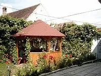 Pensiunea are o curte frumoasa cu flori, chiosc de servit masa afara.