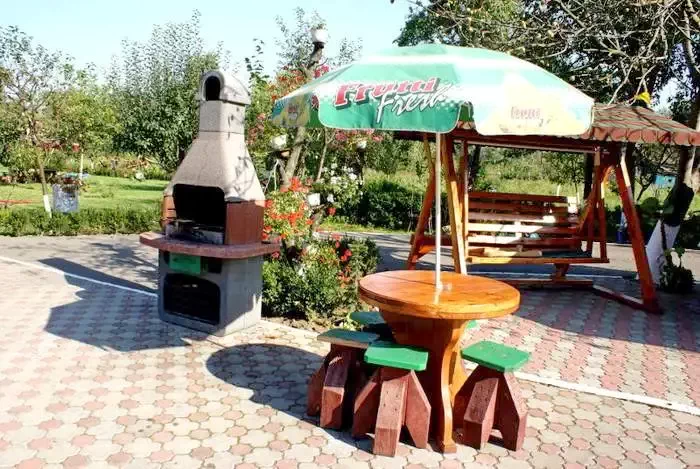 Grădina pensiunii include o zonă special amenajată pentru copii, oferind posibilități de recreere: