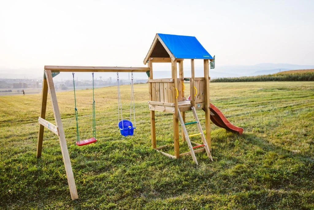 - Locul de joacă în aer liber asigură copiilor un spațiu sigur și distractiv pentru activități recreative.