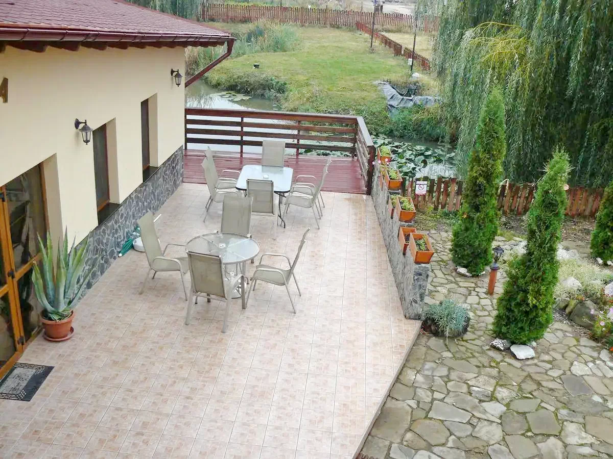 - Curtea spațioasă, amenajată cu zone verzi și iazul decorat cu nuferi albi creează un cadru idilic pentru momente de liniște.