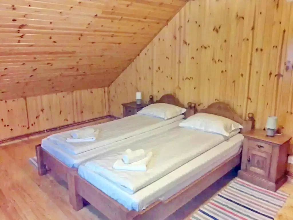 - O cameră dubla (cu două paturi simple, mobilat stil rustic, are intrare separată din terasă).