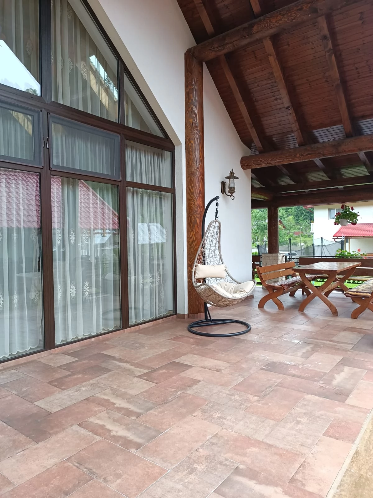 - În curte veți găsi un ciubăr, șezlonguri, un foișor cu plită pe lemne, grătar, cuptor pe lemne, disc și ceaun, precum și un loc de joacă pentru copii cu trambulină, masă de tenis, leagăn, hamac și biciclete.