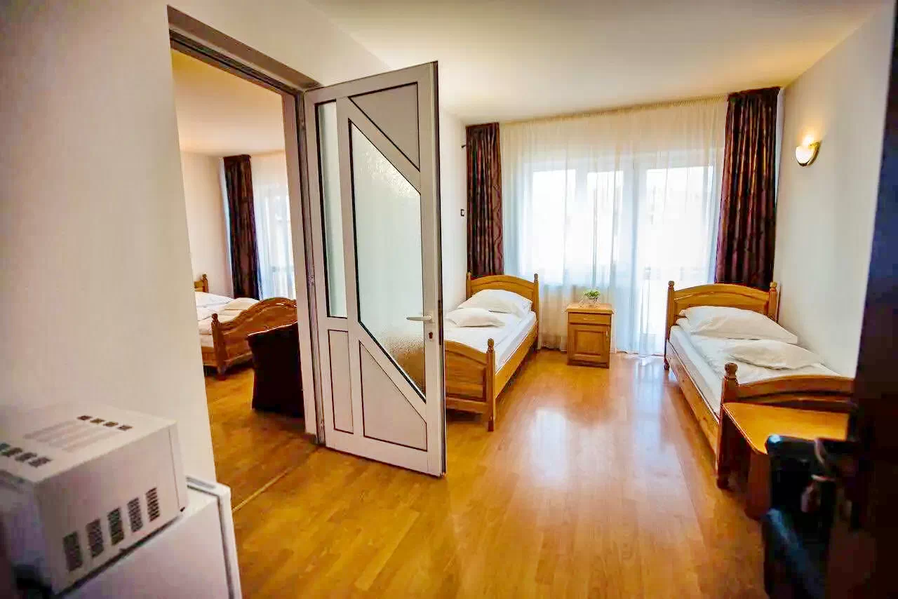 - Pensiunea dotata cu aer condiţionat si lift ultramodern, oferă camere cu comfort de 3 stele mobilate funcţional şi au baie privată cu duş şi articole de toaletă gratuite. Cele mai multe camere oferă şi un balcon.