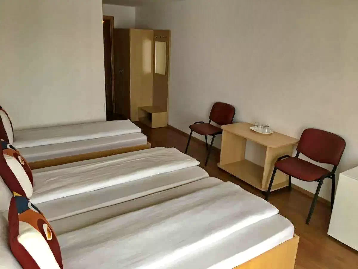 - Oferă cazare cu aer condiționat in camere cu doua si trei paturi si acces gratuit la internet. Va pune la dispoziție 7 camere triple si 8 camere twin, fiecare dotata cu birou, dulap, frigider, baie proprie, TV cu ecran plat + Cablu, Internet Wi-Fi.