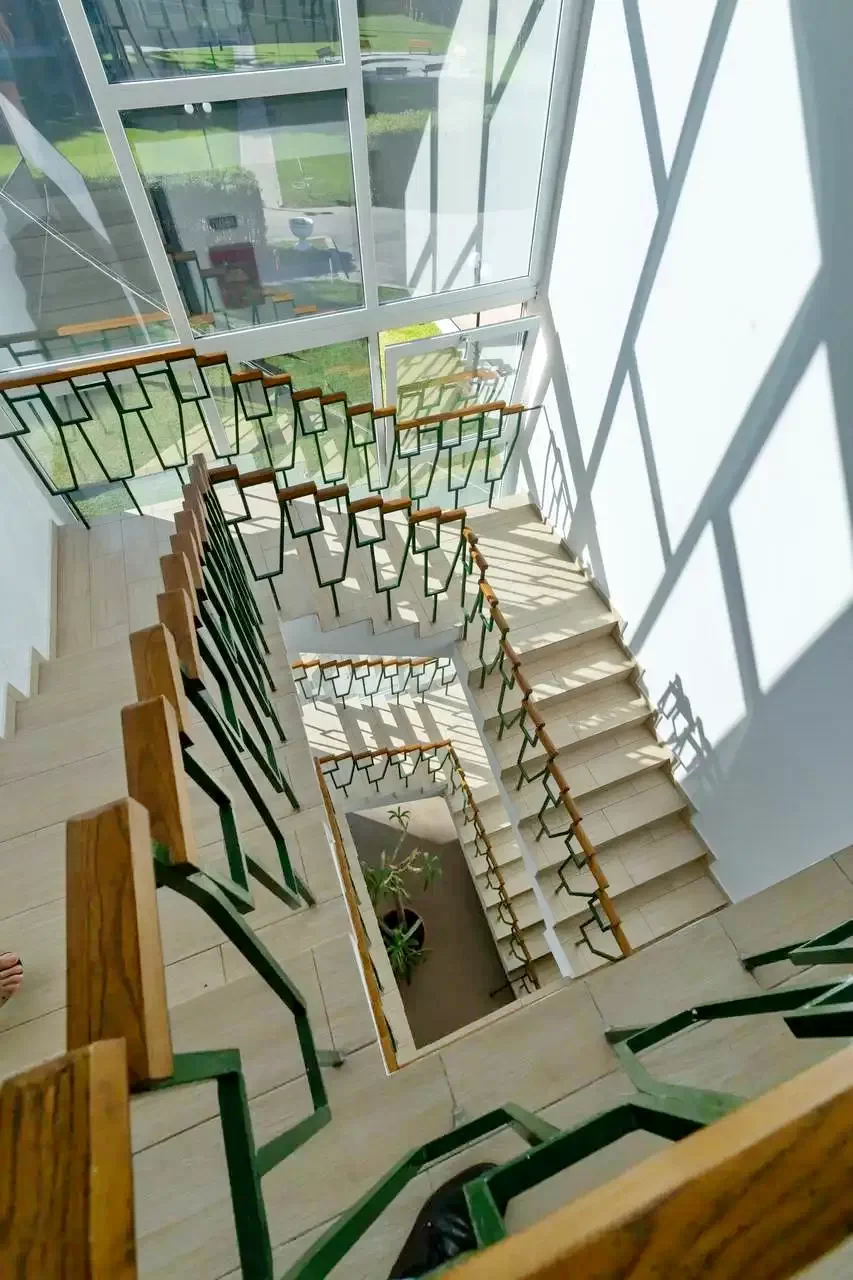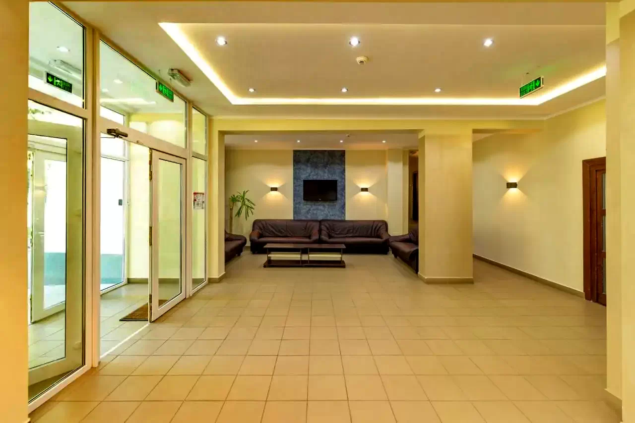Clădirea are la parter recepție, cu un bar și o sală de conferințe pentru 60 de persoane.