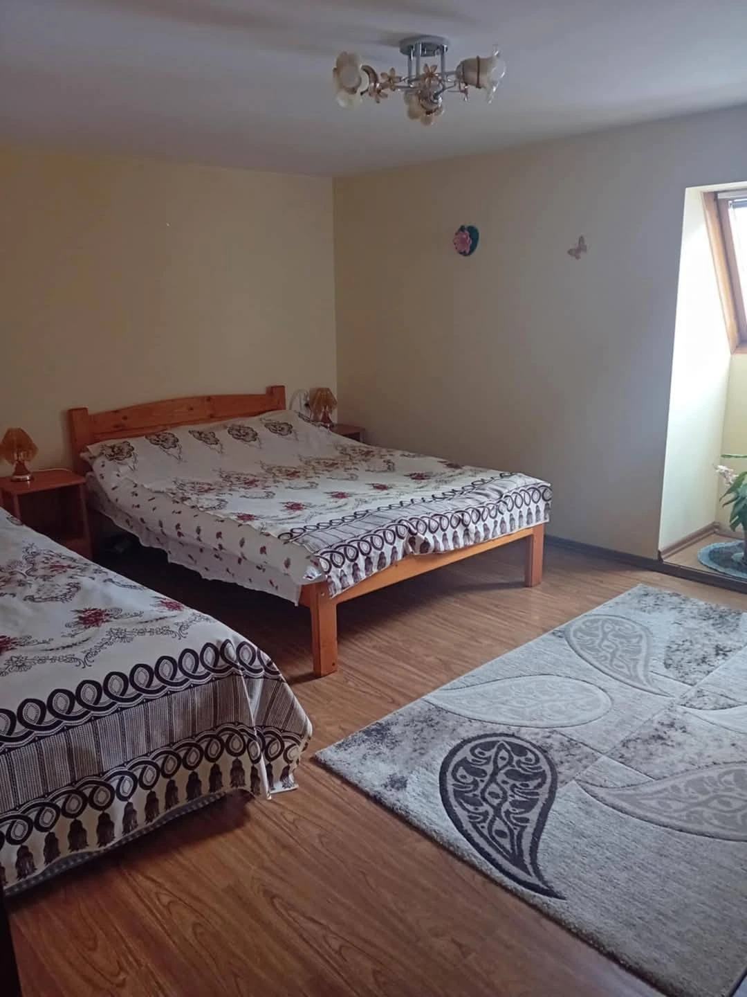 - Cameră cvadruplă la etaj I (30 m²): 2 paturi single + pat king-size, posibilitate de pat suplimentar, baie comună.