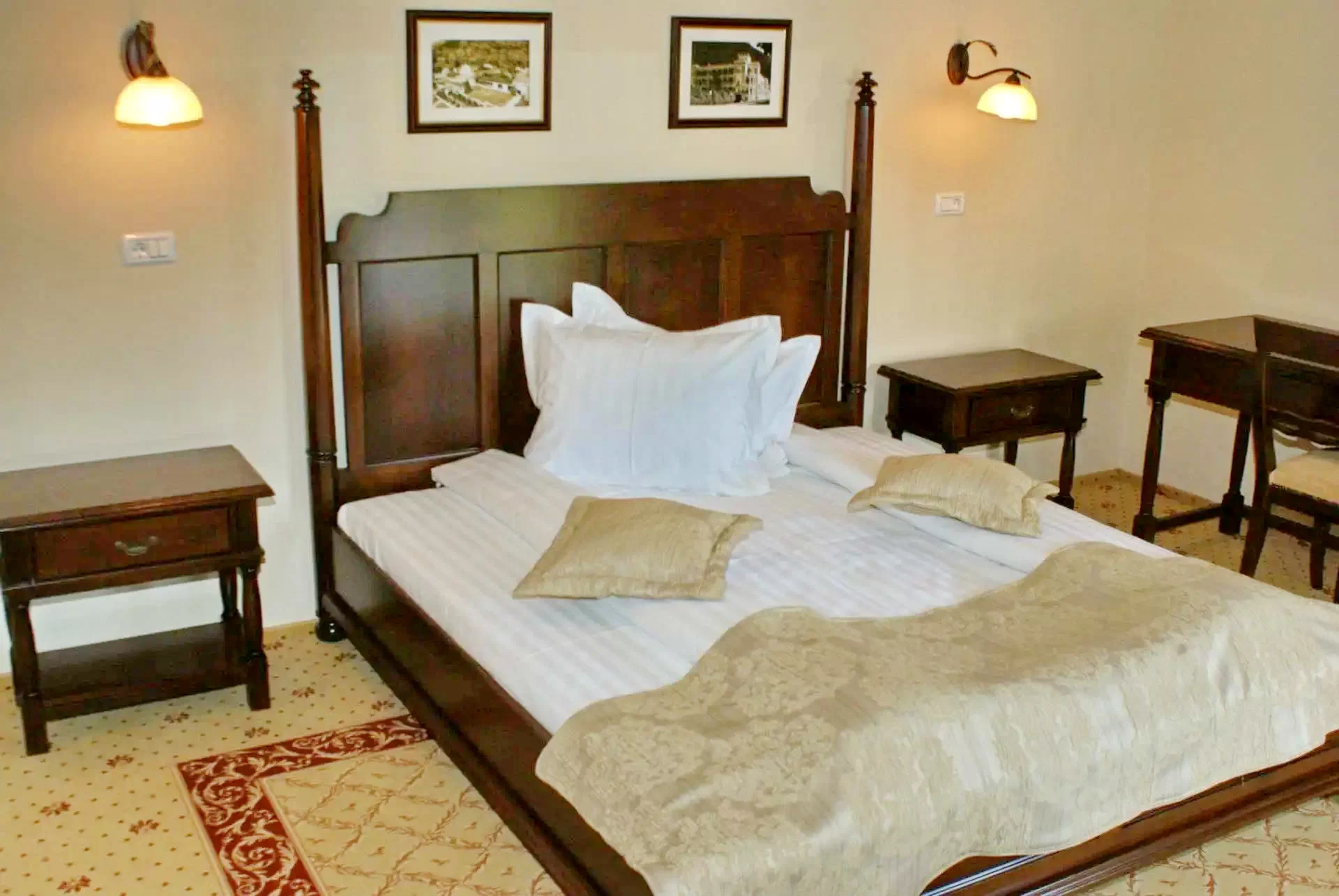 • Camerele Duble Deluxe sunt compuse din dormitor cu pat matrimonial și cameră de zi cu canapea extensibilă, ambele încăperi având televizor propriu.