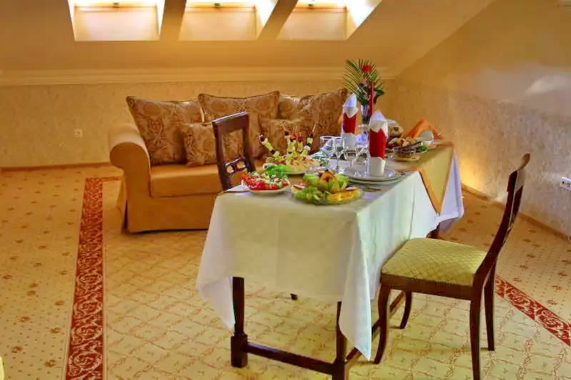 Oferă un mic dejun tip bufet, iar in meniul restaurantului se găsesc atât mâncăruri tradiționale cat si cele recunoscute in plan național si internațional.