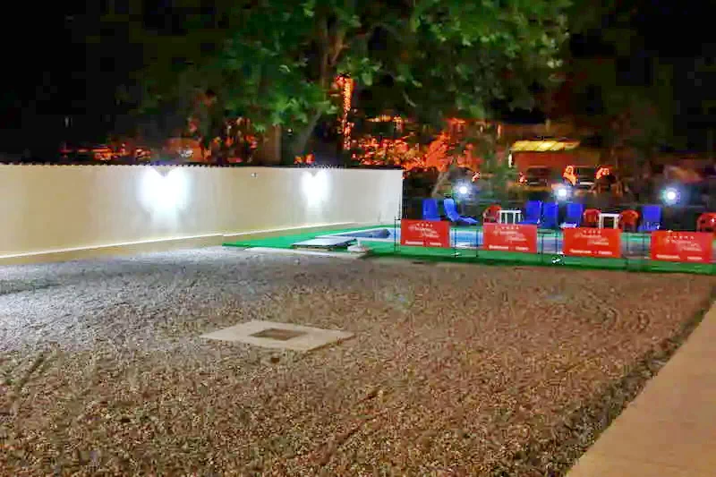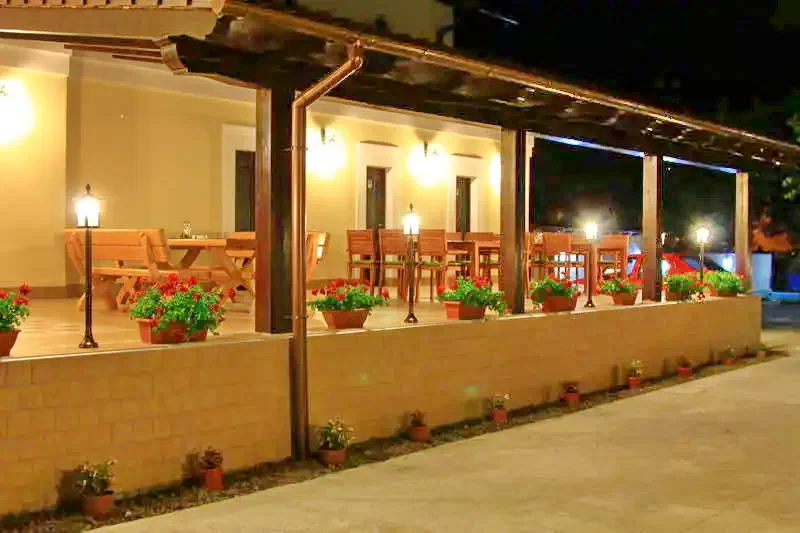Dispune de gradina amenajata, piscina exterioara eleganta (funcționează in perioada sezonului 15 mai – 15 septembrie), facilitați de grătar, ceaun precum si de o parcare privată păzită și supravegheată video pentru toți clienții pensiunii.