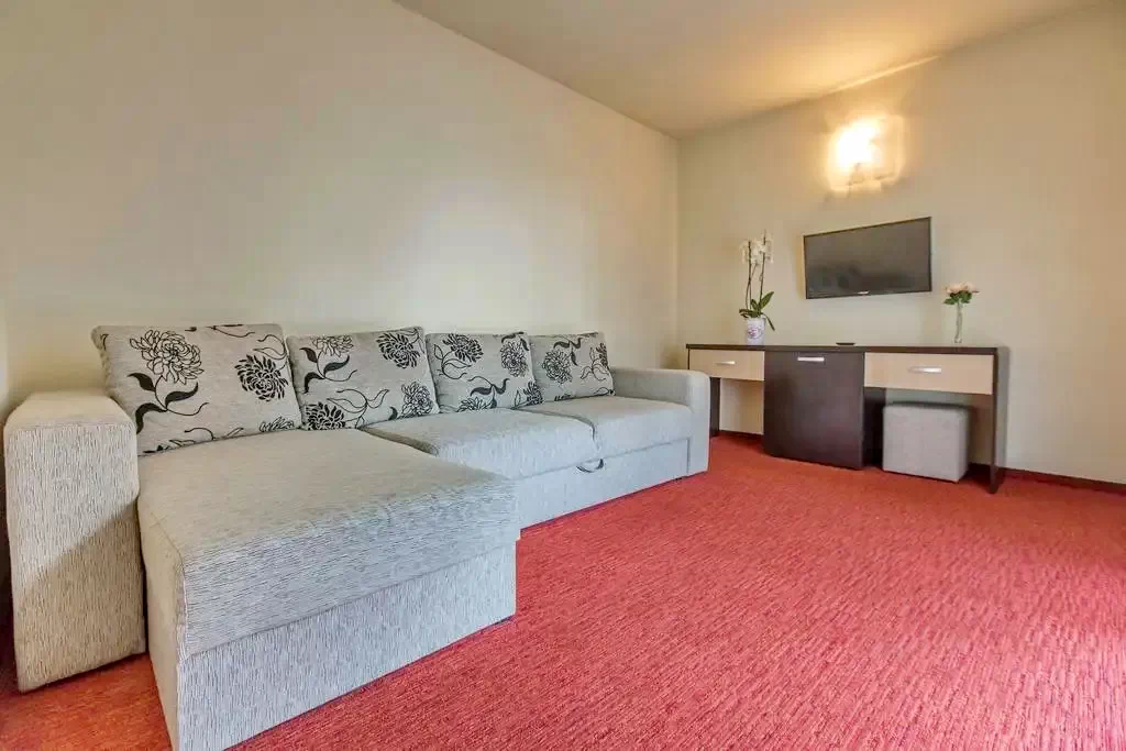 - Toate au baie privată, zonă de relaxare şi televizor, iar unele includ un dormitor separat şi un living.