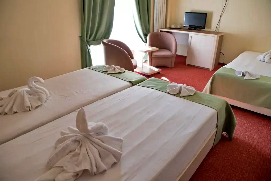 - 220 camere (camere duble, camere single, apartamente) recent reconditionate avand Minibar, Telefon, Uscator de par, TV prin cablu si baie moderna