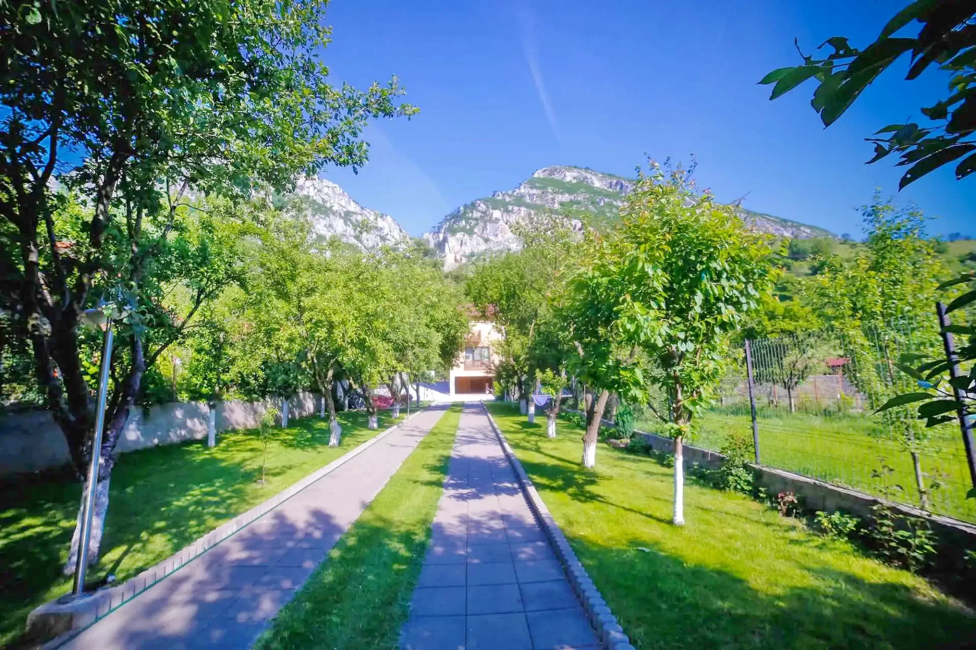 - Livada cu pomi fructiferi, gazon si hamac