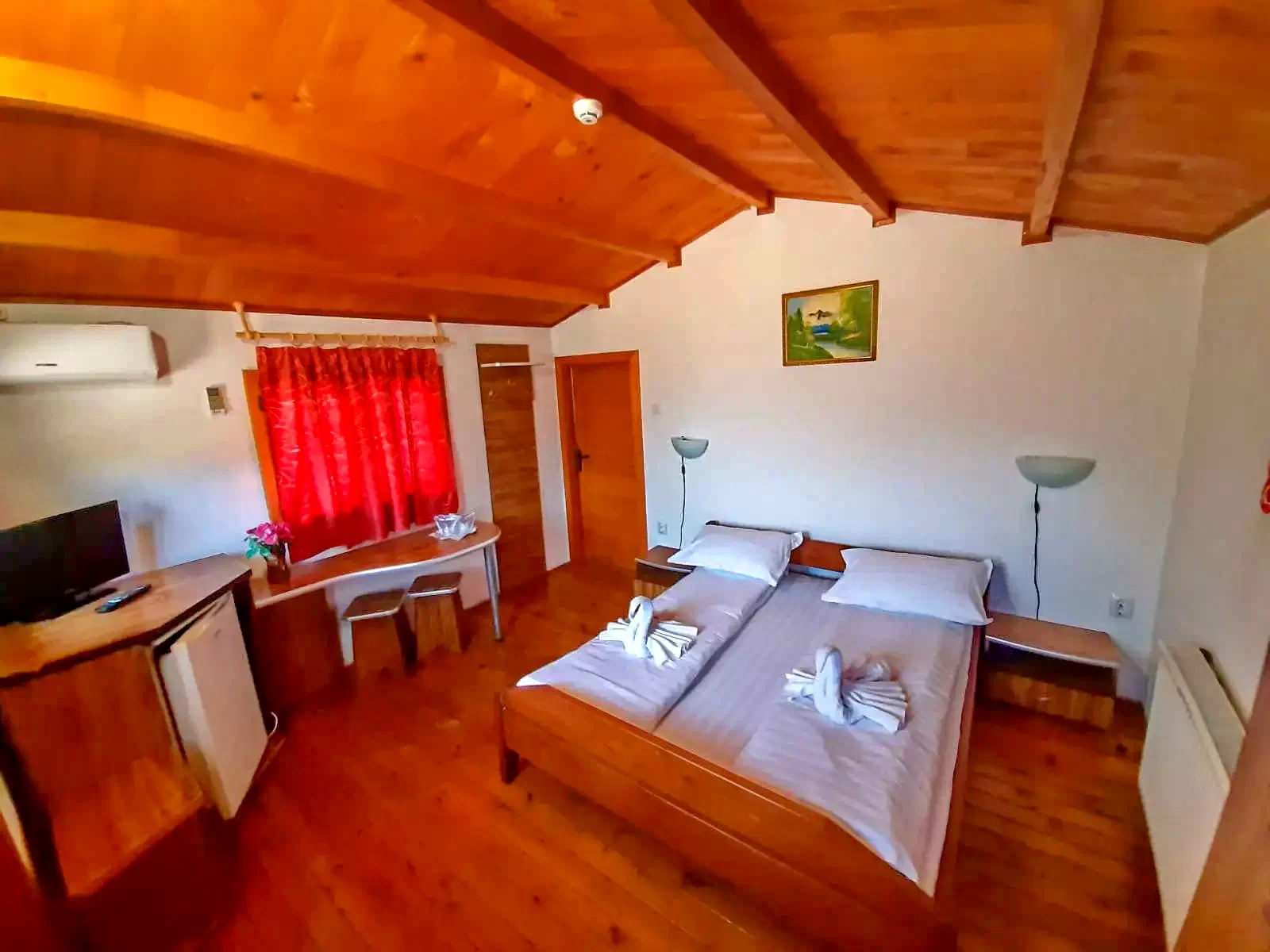- 4 cabane de 4 locuri (1 pat matrimonial si 2 paturi suprapuse)