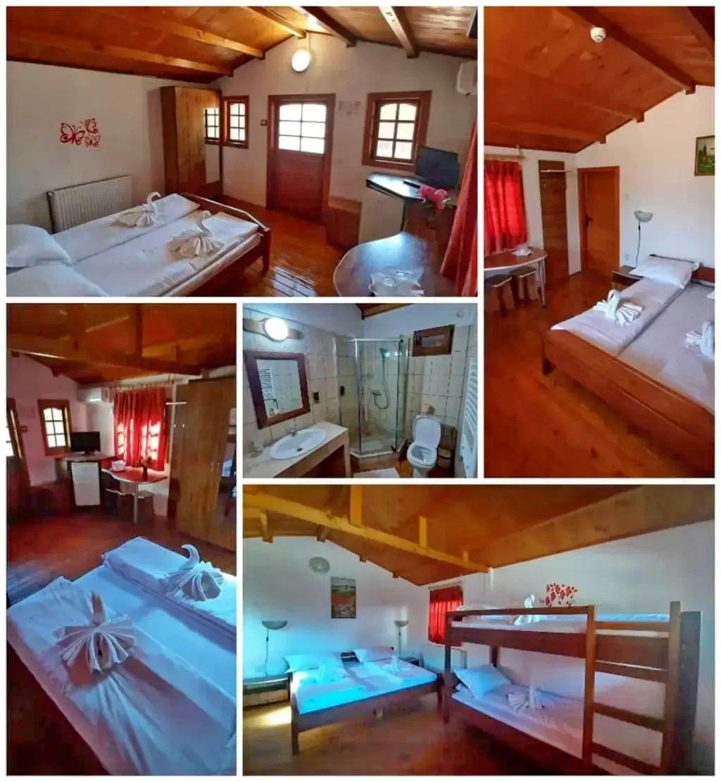 - 4 cabane de 4 locuri (1 pat matrimonial si 2 paturi suprapuse)