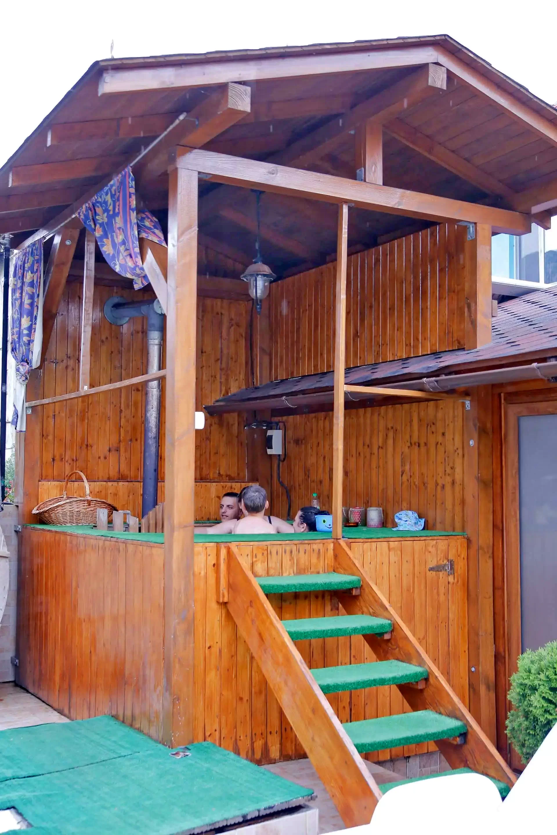 - Cada cu hidromasaj în aer liber cu apă salină încălzită