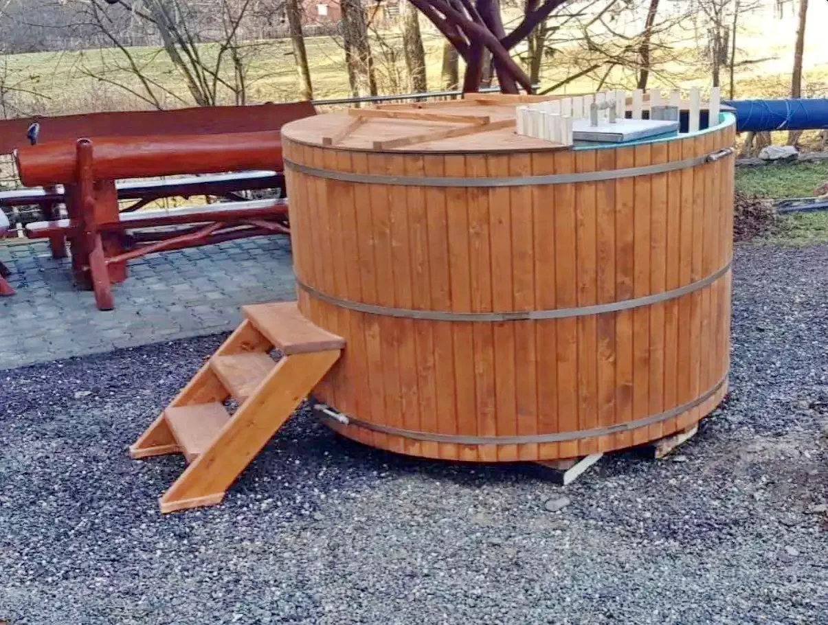 - Terasa acoperită pentru 24 de persoane, cu grătar și ceaun, este ideală pentru momente conviviale, iar ciubărul oferă o experiență de wellness unică.