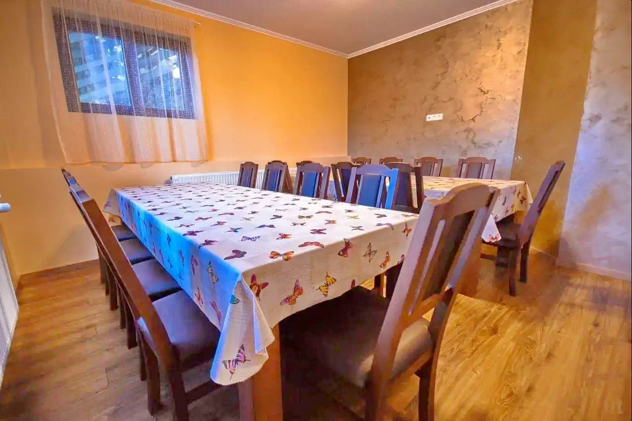 - Sufrageria cu 18 locuri oferă spațiu generos pentru mese comune.