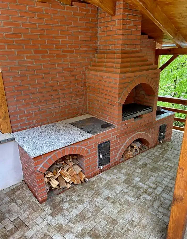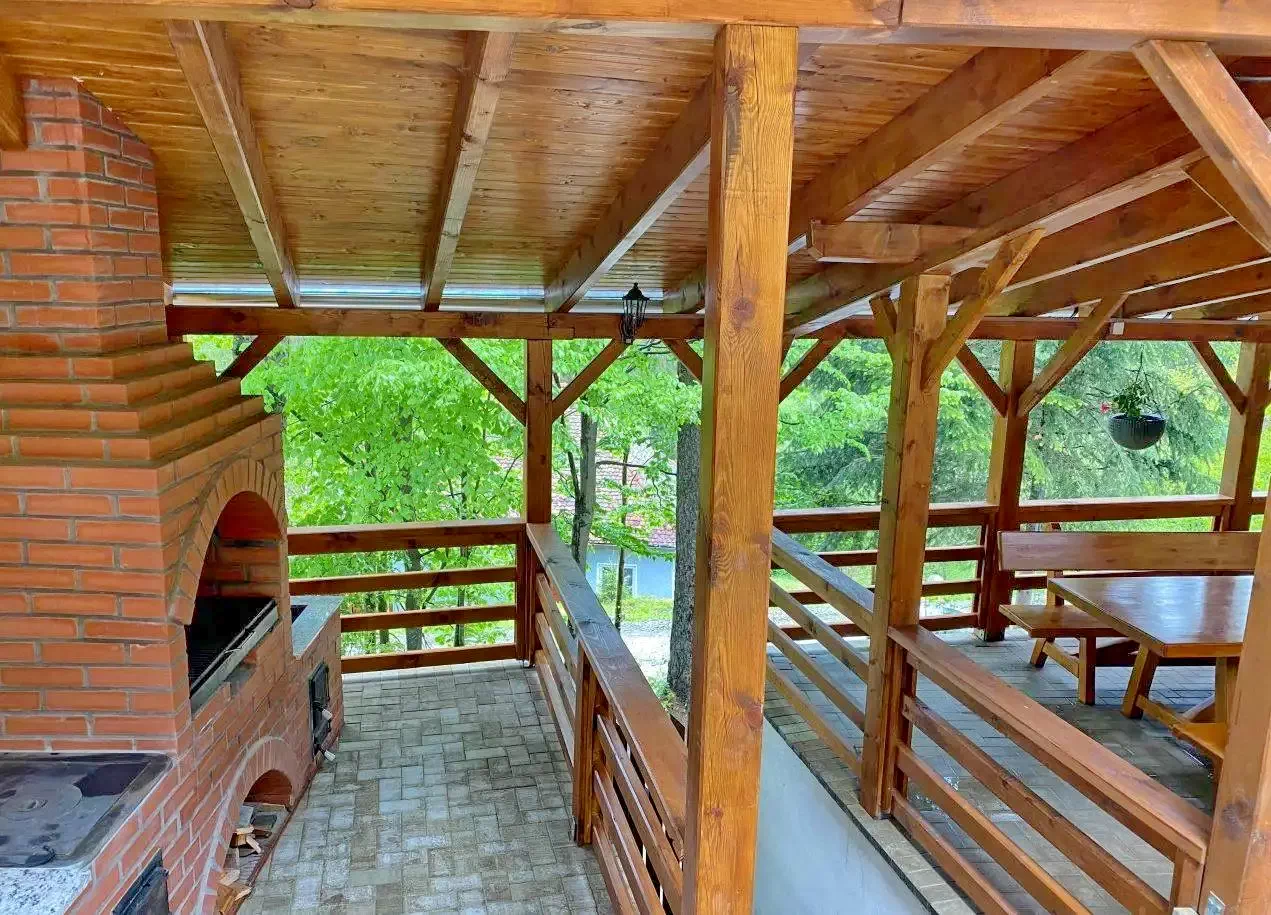 - Terasa acoperită, dotată cu grătar și ceaun, este ideală pentru mese în aer liber.