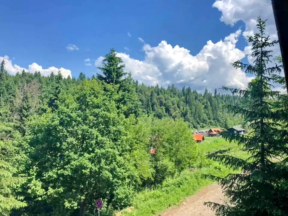 Mediu: Păduri de brazi, pârtia de schi și Centrul de Wellness la 100 metri.