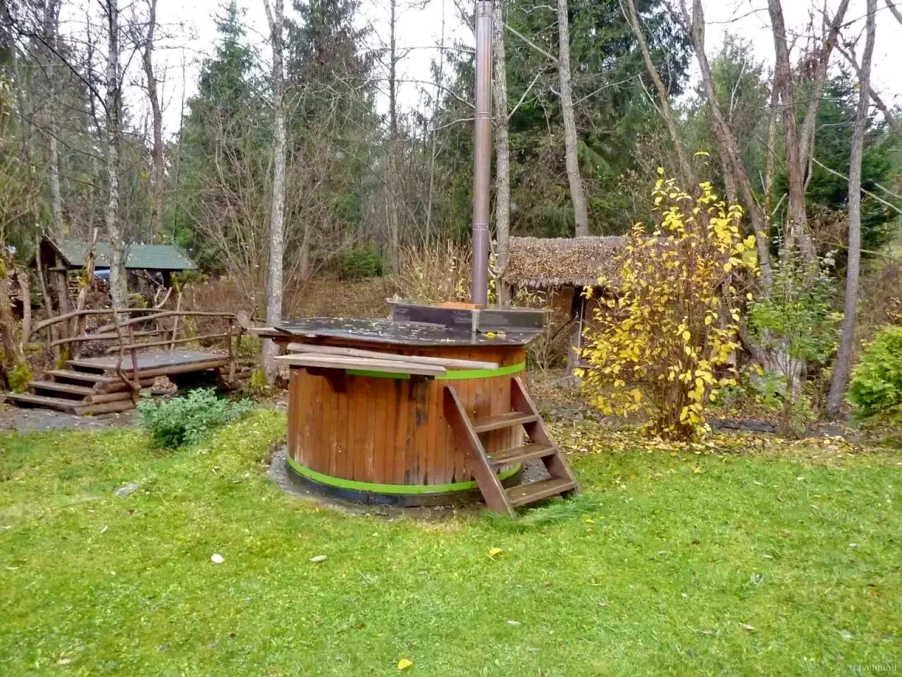 Relaxare: Foișor/terasă, șezlong, ciubăr cu apă caldă (6-8 persoane, utilizabil tot anul).