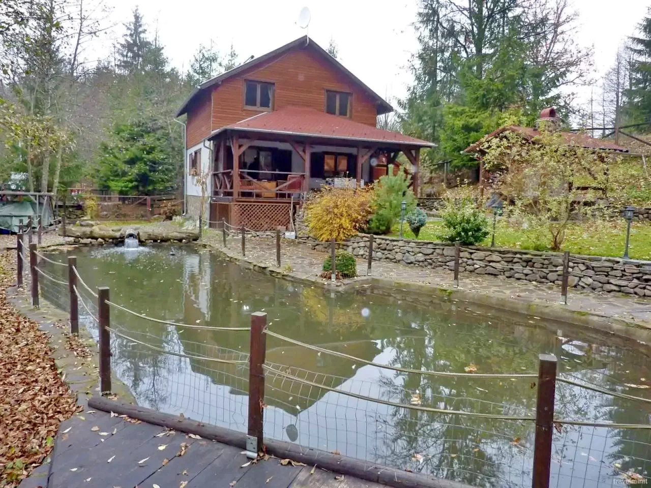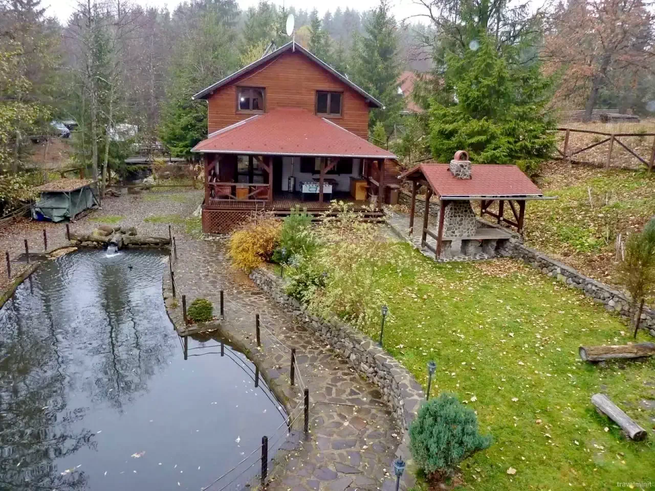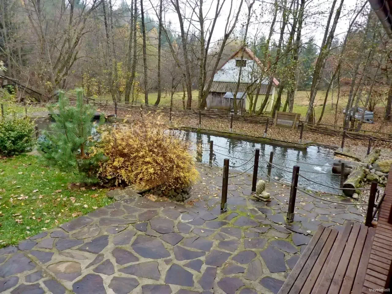 Mediu: Curte amenajată cu flori, înconjurată de pârâu de munte și păduri de brad.