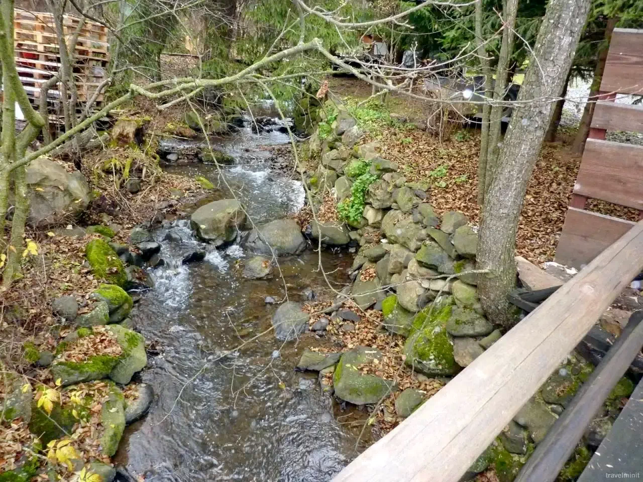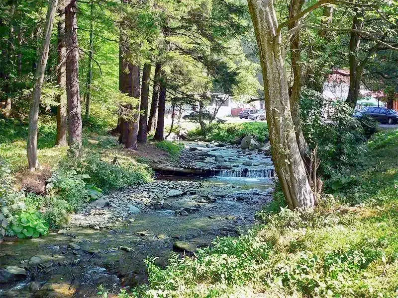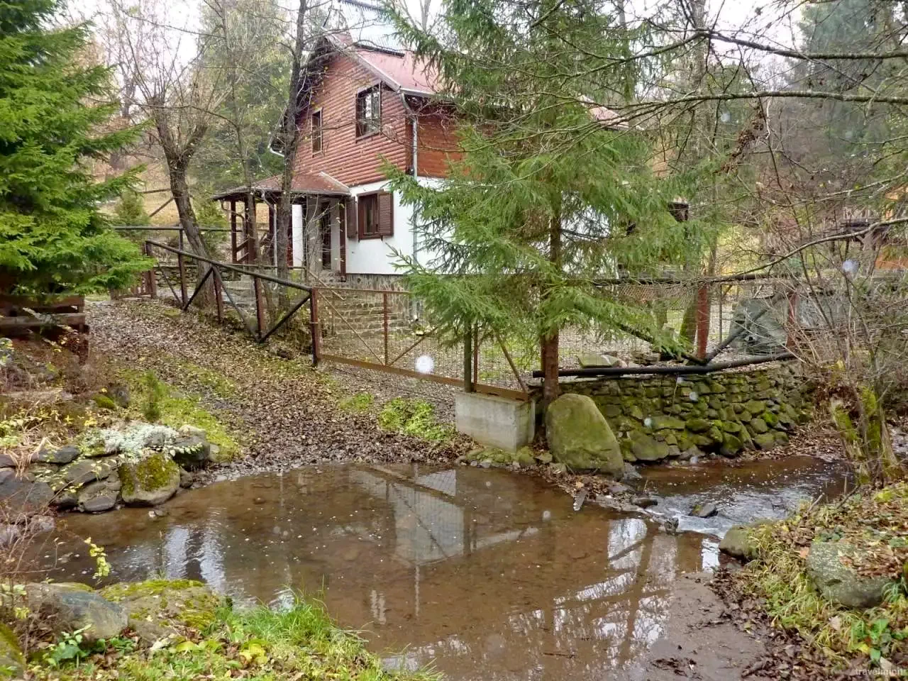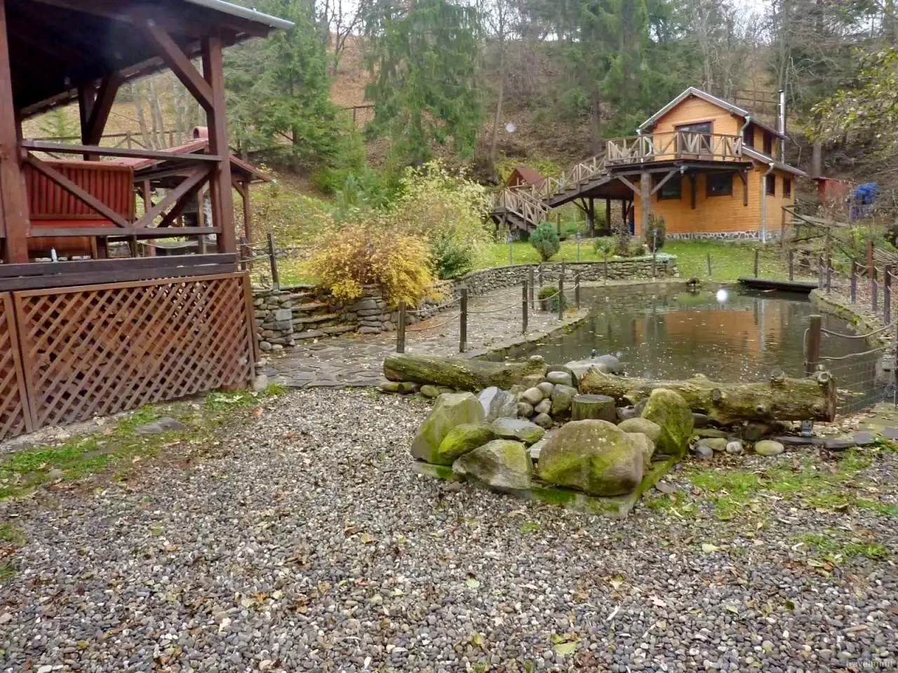 Mediu: Curte amenajată cu flori, înconjurată de pârâu de munte și păduri de brad.