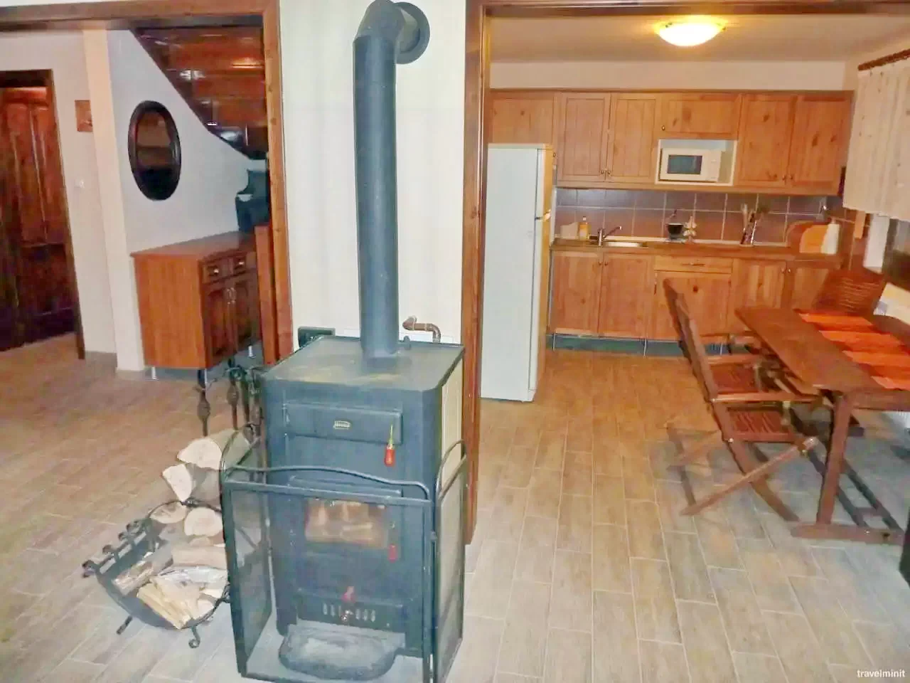 - Încălzirea este asigurată printr-un șemineu și încălzire centrală, apa caldă prin boiler electric, iar alimentarea cu energie electrică este furnizată de rețea și panouri solare.