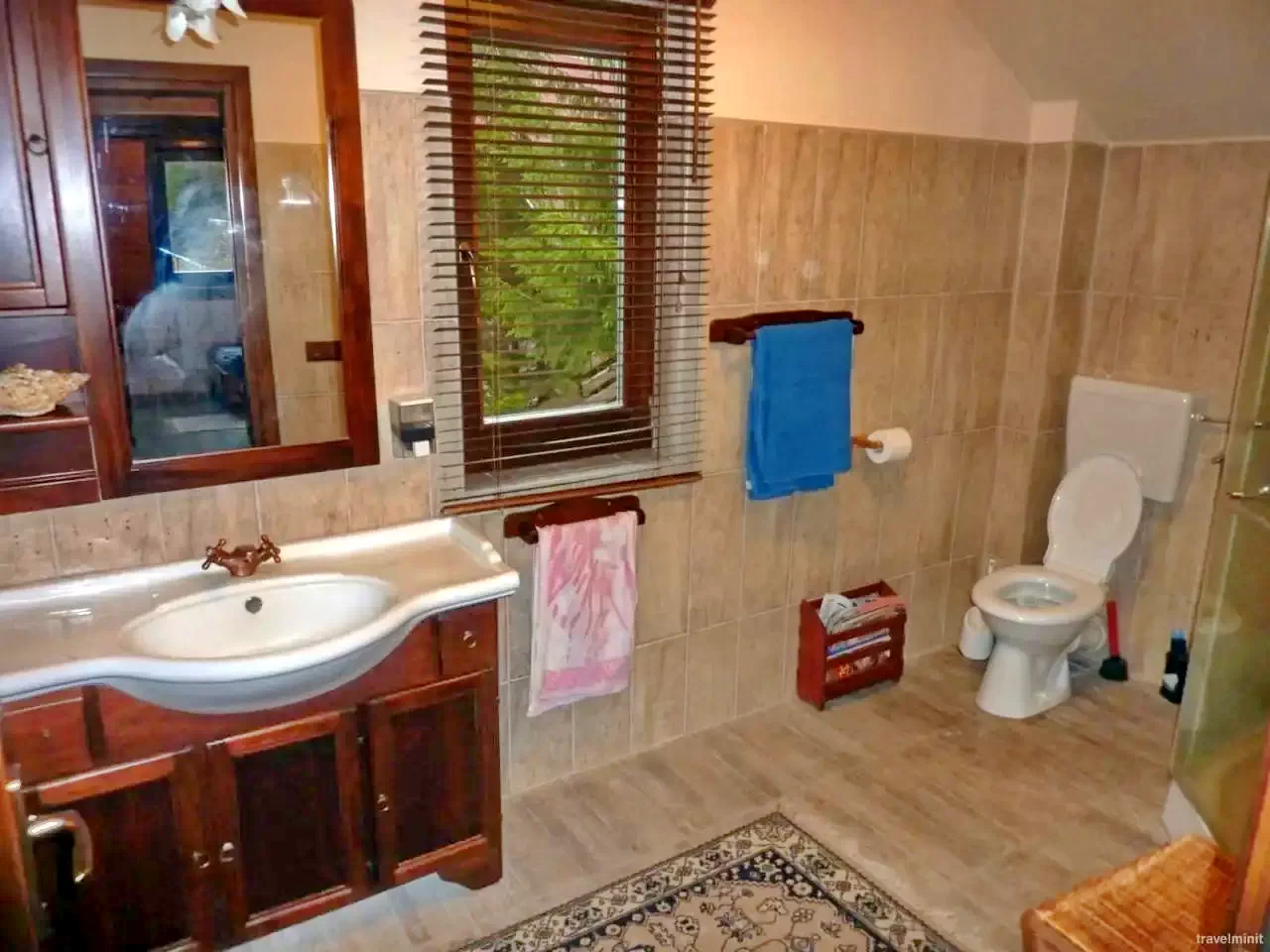 Etaj: Trei camere (2, 2, 2 persoane), baie (duș, WC, chiuvetă).