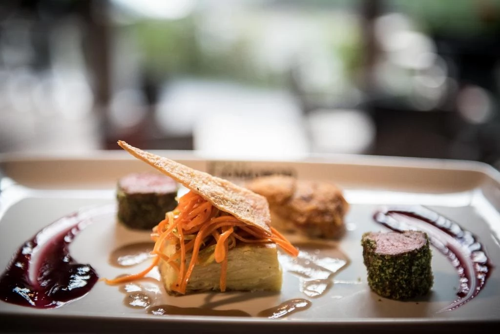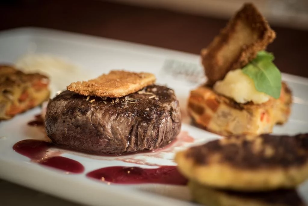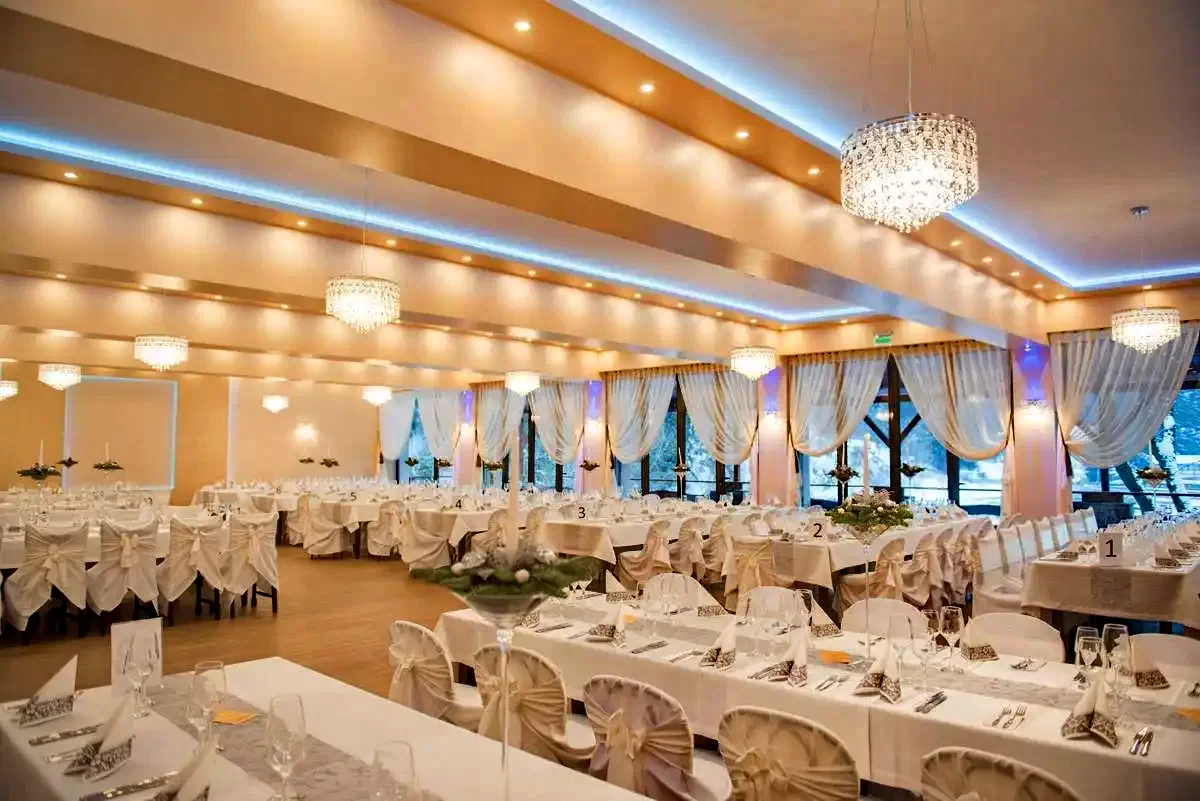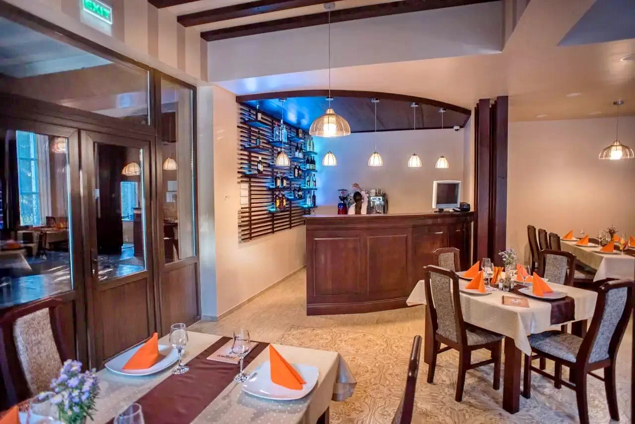 Oferă mese „a la carte” în restaurantul său meticulos renovat, cu 210 de locuri. Sala de evenimente, care a fost extinsă pentru 300 de persoane, precum și grădina de vară confortabilă, sunt un loc excelent pentru conversații și programe comune.