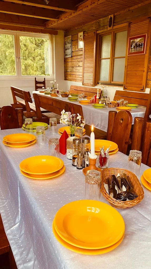 - Oferă un serviciu excelent de demipensiune (mic dejun, cină caldă cu 3 feluri) în sala de mese pentru 50 de persoane - la un preț extrem de favorabil - pentru grupuri organizate.