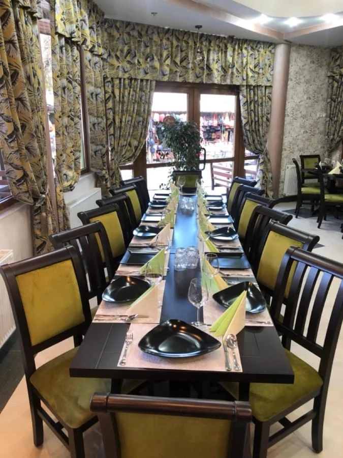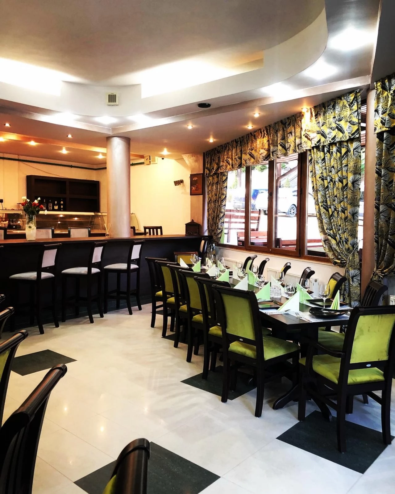 - Restaurantul discret și rafinat al pensiunii servește delicioase preparate din bucătăria tradițională românească și internațională, inclusiv mâncăruri din bucătăria italiană, pizza și fructe de mare.