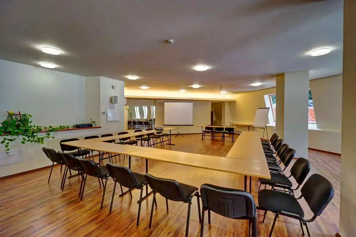 - Complexul de conferințe este format din mai multe săli separate, capabile să găzduiască până la 300 de persoane. Are propriul sistem de sunet, videoproiector și ecran de proiecție.