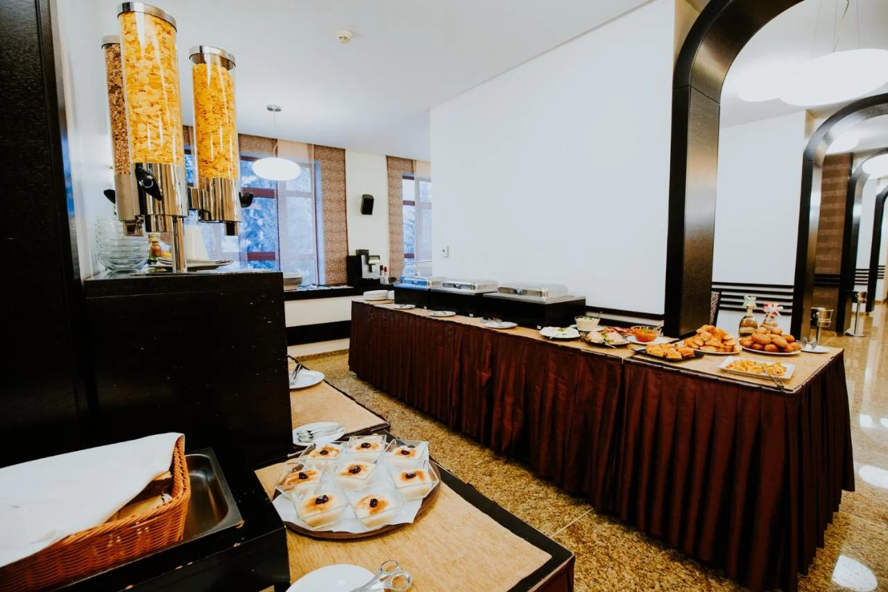 - Micul dejun este inclus zilnic, oferind o gamă variată de opțiuni pentru oaspeți. De asemenea, sunt disponibile meniuri speciale la cerere, adaptate pentru diete specifice.