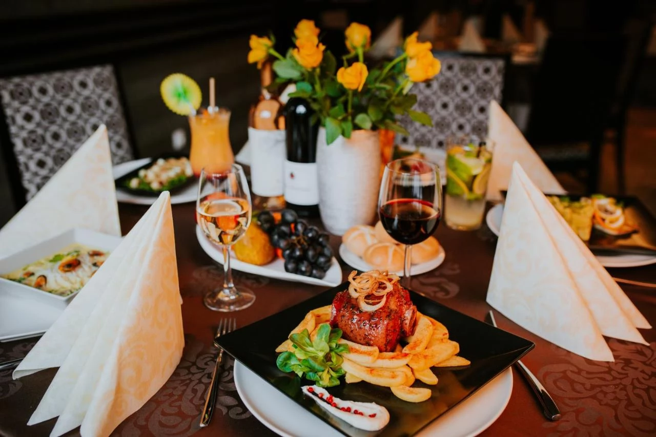 - Restaurantul hotelului combină într-un mod special preparatele tradiționale din Transilvania cu bucătăria internațională.