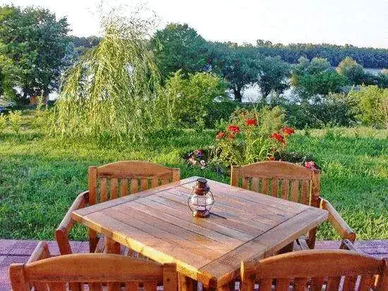 - Terasa exterioară, situată într-un spațiu verde amenajat, oferă o priveliște idilică asupra Dunării, creând un loc perfect pentru relaxare și mese în aer liber.