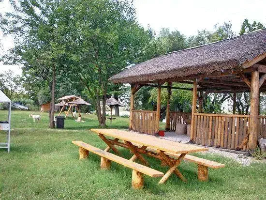 - Foișor rustic și leagăn situate pe malul Dunării