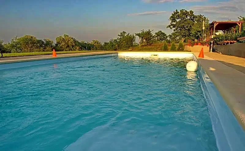 - Piscină în aer liber cu șezlonguri
