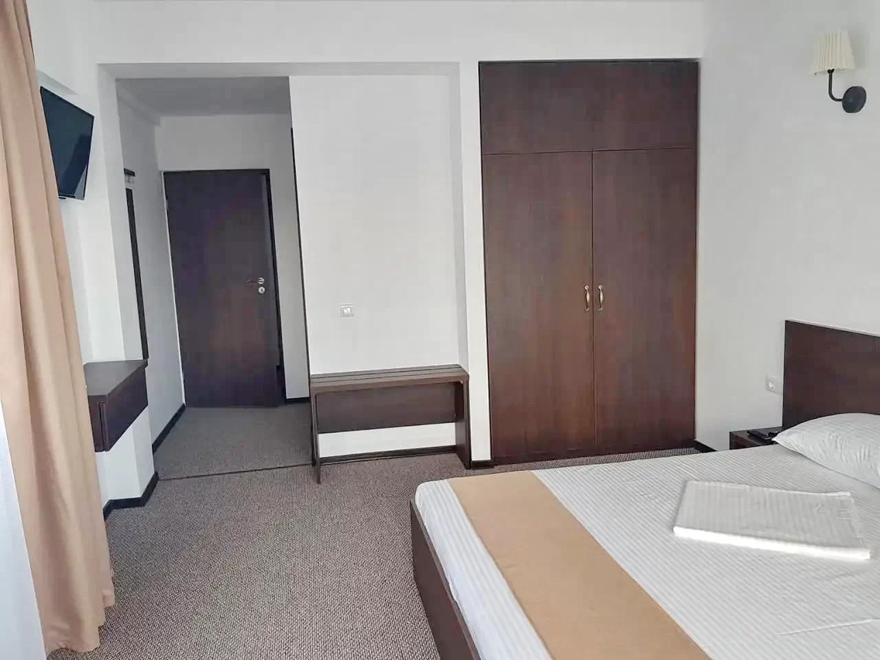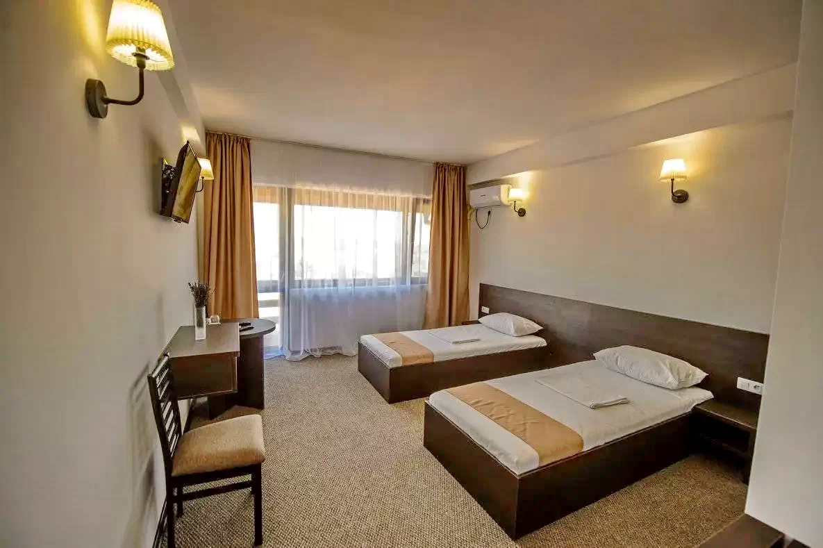 Camerele sunt spatioase si confortabile, dotate cu: TV LCD, aer conditionat, internet WI-FI, minibar, uscator de par, articole de toaleta.
