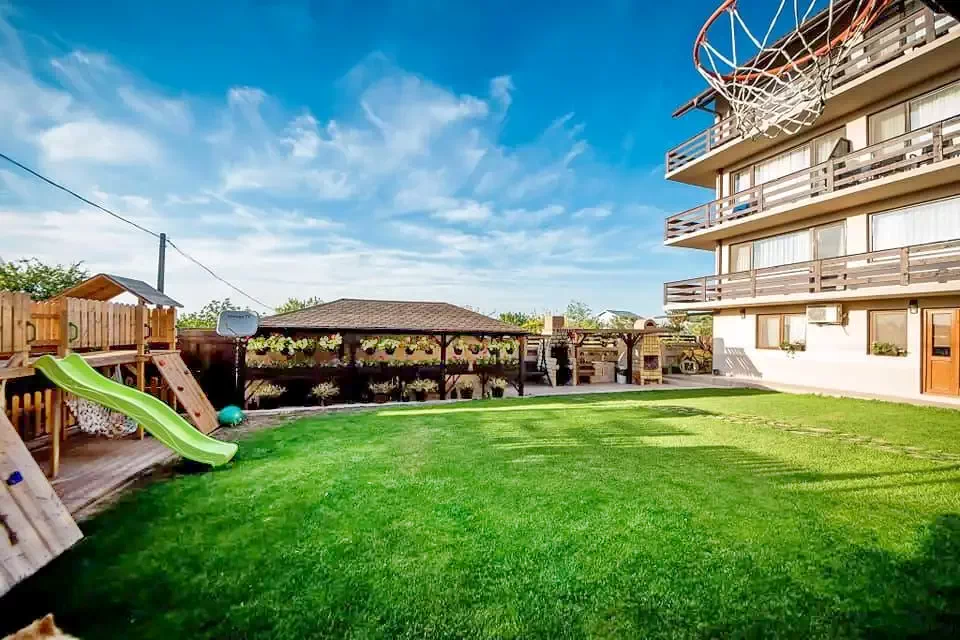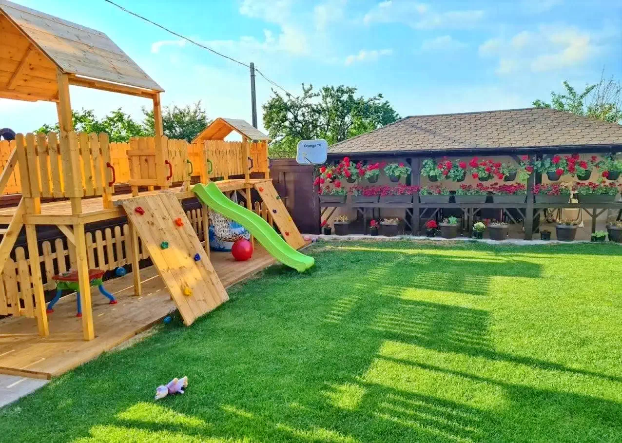 Pensiunea dispune de curte generoasa dotata cu foisor, loc de joaca pentru copii si ceaun.