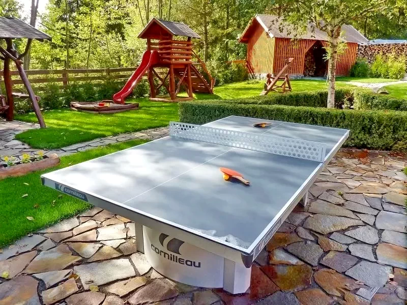 - Curtea generoasă este echipată cu leagăn, balansoar, tobogan, groapă cu nisip, masă de ping-pong, teren de tenis cu piciorul, teren de volei și coș de baschet.