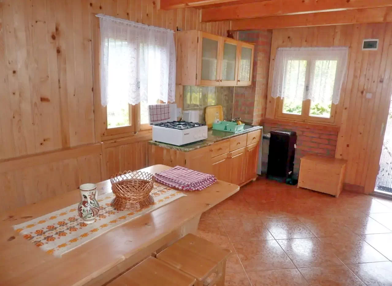 - Fiecare cabană dispune de o bucătărie proprie, complet utilată, unde oaspeții au la dispoziție aragaz, frigider, cafetieră, fierbător, vase și tacâmuri pentru a pregăti mesele în regim propriu.